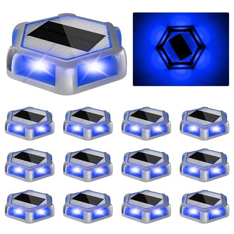 reddit 16-Pack Solar Dock Lights Bright Blue JACKYLED Solar Powered Driveway Lights Outdoor IP68 Waterproof LED Deck Lighting Road Studs for Stair Ground Backyard Path Runway